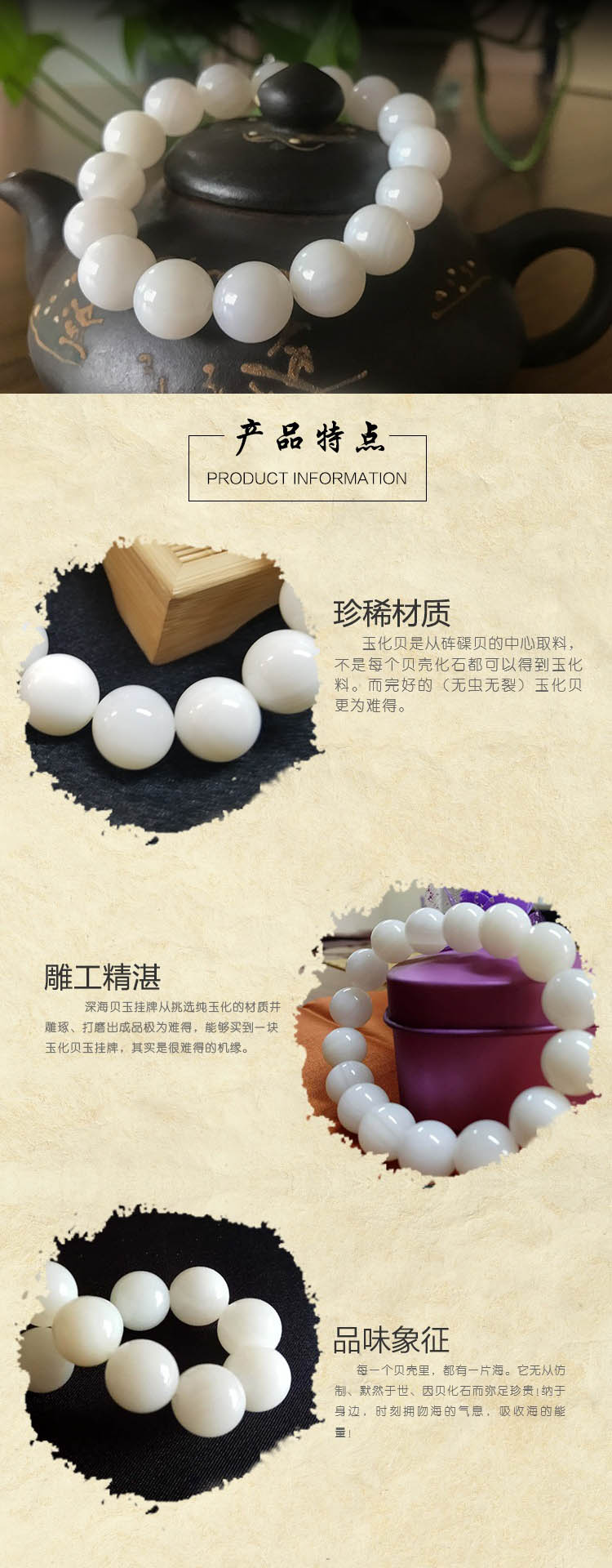 天然深海贝玉砗渠磲手串