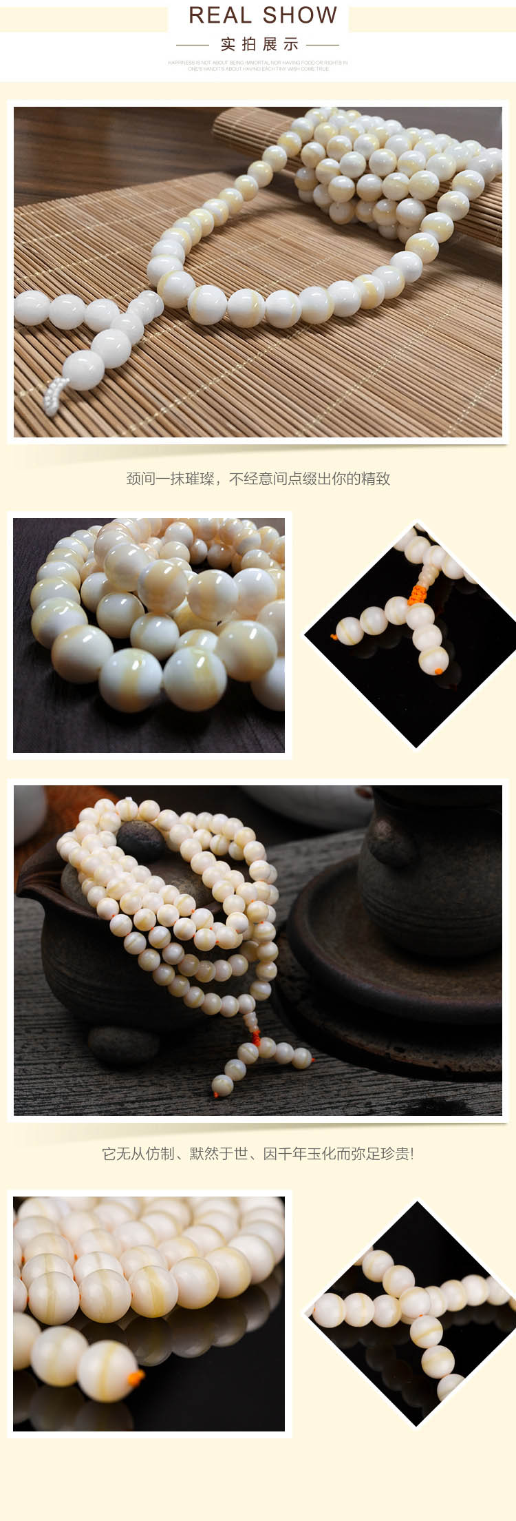天然深海贝玉金丝砗渠磲项链