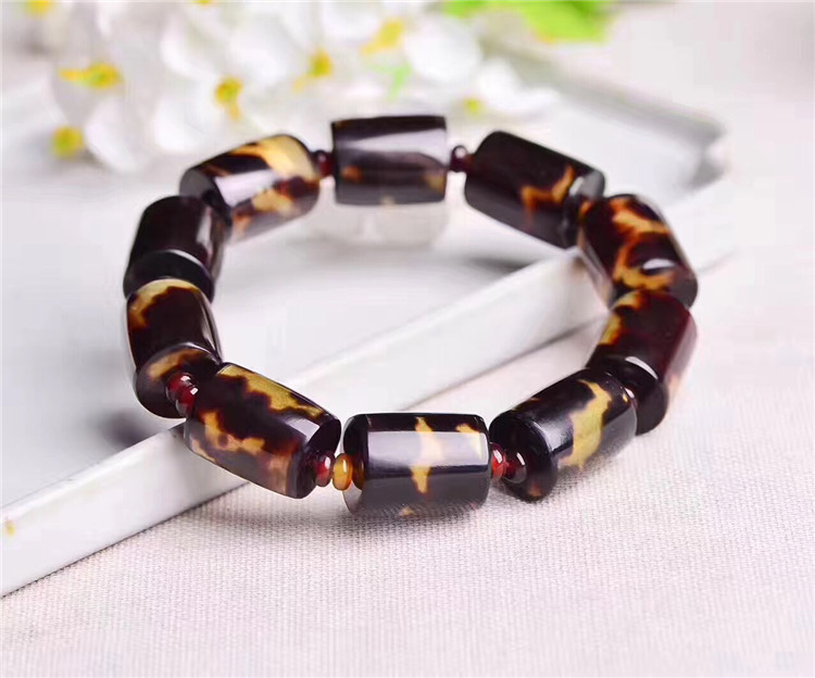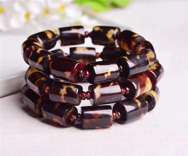 海南玳瑁色桶珠手串