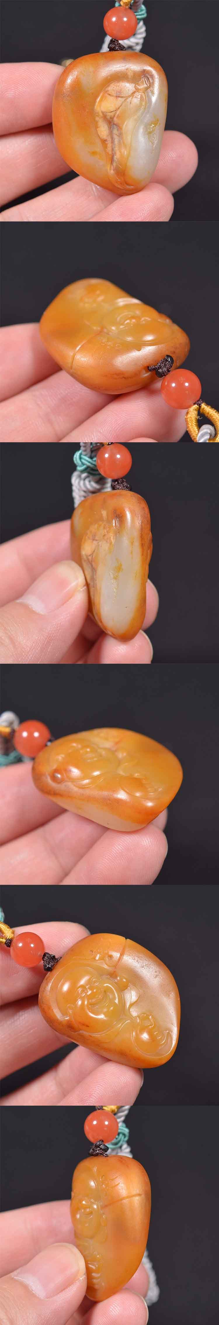 ★工艺:苏州制作独籽雕刻,工作室出品,由经验丰富的玉雕师傅精心设计制作,雕刻了一尊弥勒佛挂件,弥勒佛开脸喜庆非常到位,细节线条非常精细,神态栩栩如生,意境非常好,设计非常的出彩和精细,人工柔光处理,细节处理非常干净到位,工艺无可挑剔!