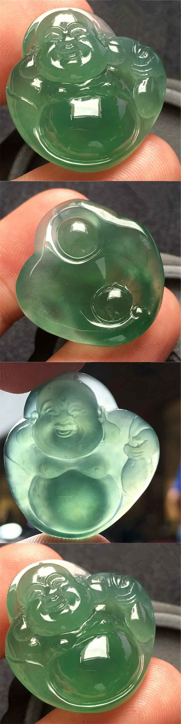 ★产品描述:冰种满绿天然缅甸翡翠A货老坑佛公挂件
