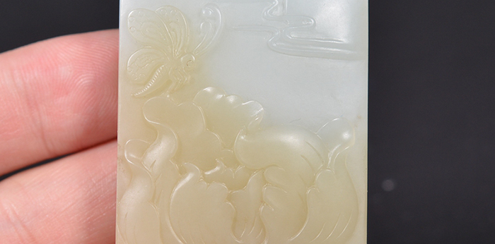 天然致密油润糖白籽料敦实玉牌花开富贵挂件