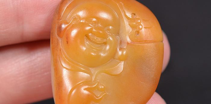 天然鸡油黄老熟细腻和田白玉籽料弥勒佛挂件